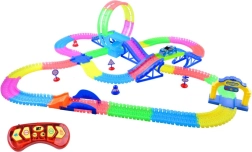 Questa pista automobilistica colorata e flessibile consente ai bambini di creare il proprio tracciato con loop, ponti e incroci. Lunga 6,56 m, offre spazio a sufficienza per gare veloci, sperimentazione e sviluppo della fantasia. I segmenti trasparenti e brillanti creano attraenti effetti luminosi durante la corsa.