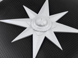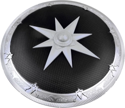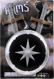 Lo scudo rotondo con motivo a stella e la spada con impugnatura dorata decorativa hanno un aspetto realistico e donano a ogni costume un look impressionante.
