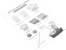 La confezione include tutti gli strumenti essenziali: dai contenitori graduati alla sabbia cristallina, fino al seme del cristallo e al bastoncino per mescolare. La chiara guida illustrata accompagna i bambini in sicurezza durante tutto il processo. Per risultati ottimali, rispettare temperature, tempi e procedure consigliati ed eseguire l’esperimento sotto la supervisione di un adulto.