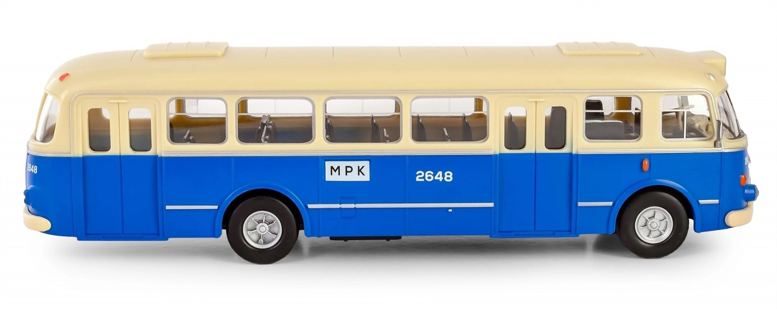 Modello di autobus PRL Jelcz 272 MEX è un veicolo ricostruito dell'era degli anni '60, conosciuto con il soprannome di "Ogórek". Questo modello di colore blu è un'attrazione straordinaria e un nostalgico richiamo al passato.