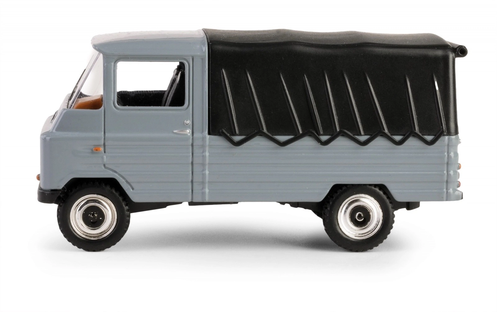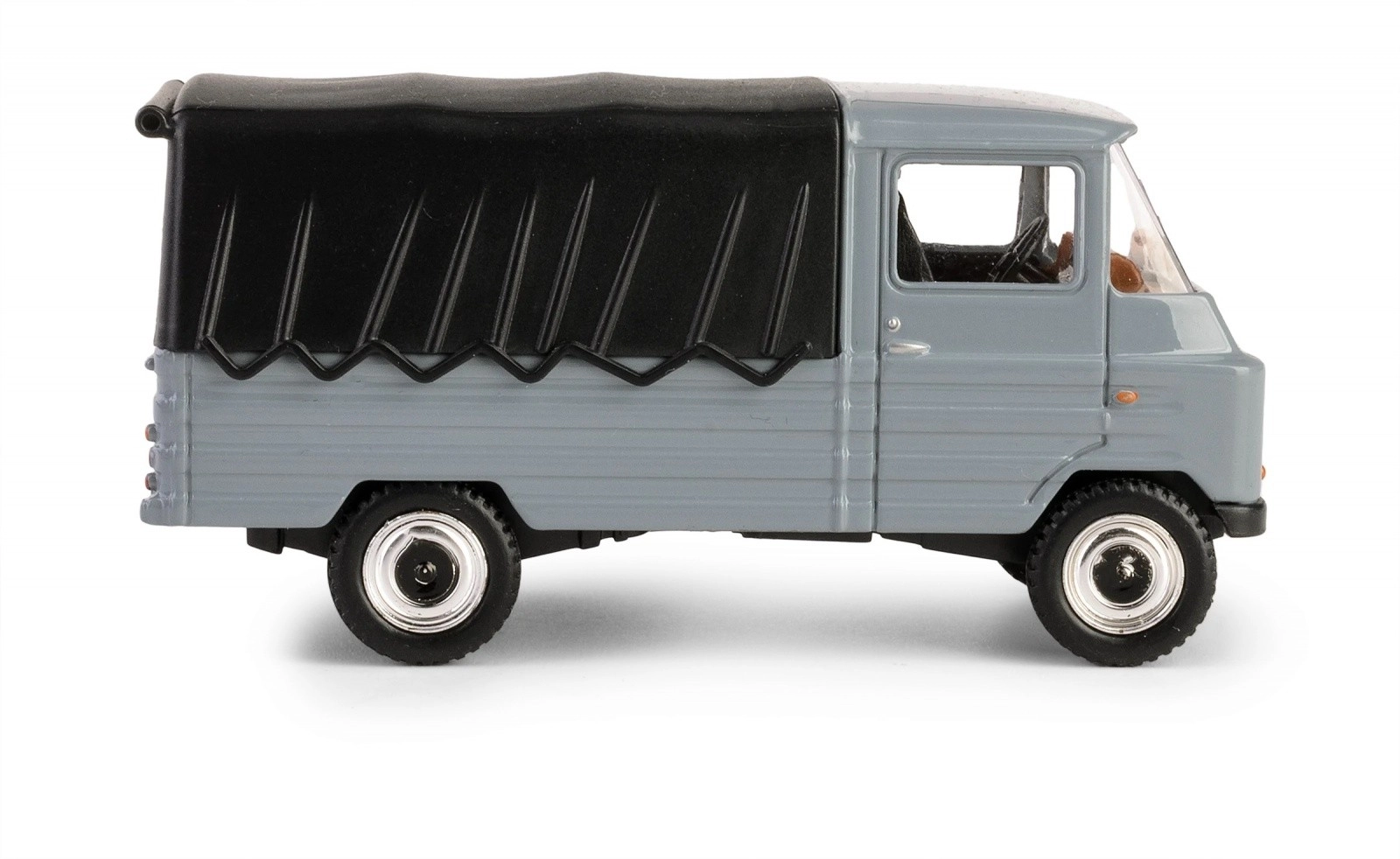 La lavorazione dettagliata include elementi realistici come la costruzione robusta e il telo posteriore funzionale.