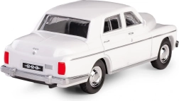 La Warszawa 223 bianca, con elementi cromati dettagliati e pneumatici in gomma, cattura fedelmente il carattere della leggendaria berlina dell'era PRL.