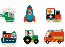 - Puzzle in legno a incastro con tema trasporti