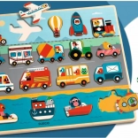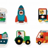 Scopri il colorato puzzle in legno a incastro con tema mezzi di trasporto di DJECO, che stimola la motricità fine, la coordinazione mano–occhio e il pensiero logico. I pezzi con i veicoli si inseriscono nelle sagome fresate, hanno contorni colorati per un orientamento più semplice e possono essere usati anche come personaggi separati per il gioco creativo.
