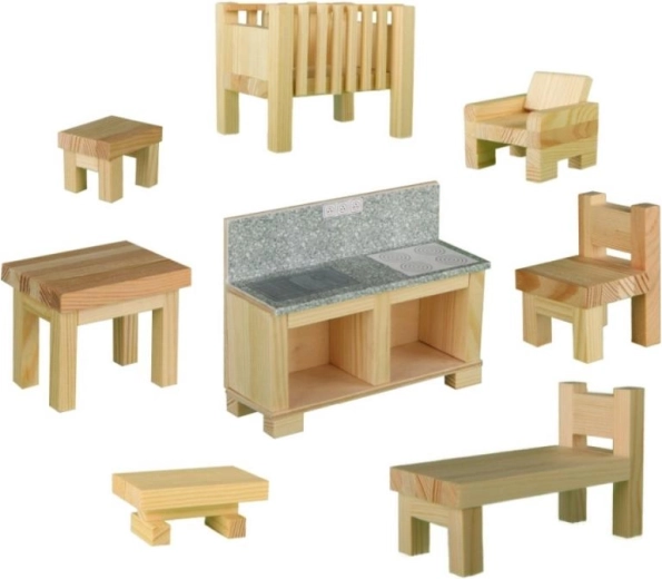Scopri il fascino dei mobili in miniatura con il nostro kit CREATIVE KITS. Con il nostro set puoi costruire facilmente vari pezzi d'arredo per il tuo piccolo mondo in legno di pino.