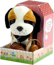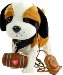 Il San Bernardo interattivo marrone-bianco al guinzaglio è realizzato in materiale morbido ed ecologico, gradevole al tatto. È dotato di grandi occhi scuri, coda prominente e naso sporgente. Il giocattolo viene fornito con un lungo guinzaglio con interruttore che permette al bambino di controllare facilmente il suo animale domestico. Il cane balla e canta, aggiungendo divertimento e realismo al gioco.