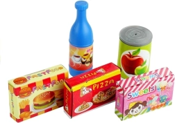 Questo giocattolo è adatto a bambini dai 3 anni e contiene un totale di 50 pezzi: frutta, verdura, formaggi e piatti classici come pizza, hot-dog o patatine. I bambini possono divertirsi per ore con questo set di gioco realistico.