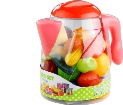 Scopri un set colorato di alimenti in un pratico barattolo con manico rosso. Ogni elemento di questo set è realizzato con plastica sicura e certificata, garantendo divertimento senza preoccupazioni. Il barattolo con manico ne facilita il trasporto.