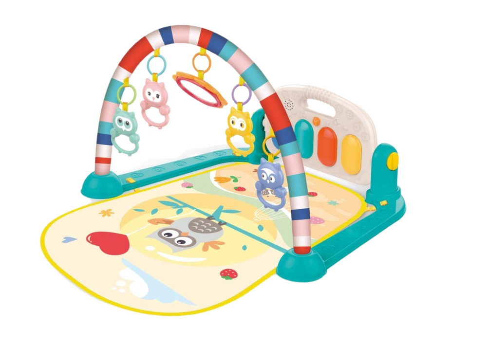Tappeto Palestra Multifunzionale per Neonati: un modo allegro e stimolante per giocare, progettato per supportare lo sviluppo motorio e sensoriale del tuo bambino. Con dettagli vivaci e il tema di un gufo sorridente, questa palestrina è ideale per incoraggiare la crescita del tuo bambino attraverso il gioco attivo.