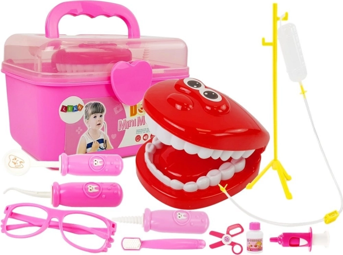 Scoprite il divertente set medico per bambini per piccoli dentisti, che aiuta a eliminare la paura dello studio dentistico e sostiene il gioco creativo. Nella pratica valigetta troverete strumenti odontoiatrici, supporto a capacità, siringa, trapani e anche denti con mascella per esercitarsi in modo sicuro alla cura del sorriso. La struttura in plastica leggera e resistente e le forme amichevoli sono ideali per bambini dai 3 anni.