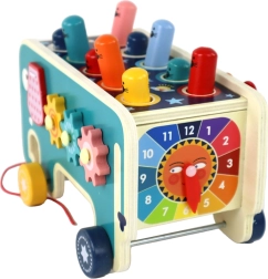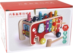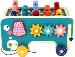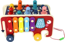 Il set è composto da una macchinina in legno a tema elefante, che attirerà l’attenzione dei più piccoli. Sul tetto dell’auto ci sono teste colorate di animaletti sotterranei, che diventano il bersaglio del gioco "Whac-a-Mole". I bambini cercano di colpirle con i martelletti inclusi, sviluppando così destrezza e coordinazione motoria.