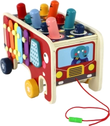 Il set è completo e include la macchinina con cordicella da traino, 2 martelletti per il gioco "Whac-a-Mole" e una bacchetta per i cimbali. Inoltre, il giocattolo è realizzato in legno atossico, che garantisce resistenza e sicurezza per i bambini.