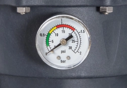 Passa comodamente tra i modi filtro, controlavaggio, risciacquo, ricircolo, scarico e chiuso. Il manometro indica quando è il momento del controlavaggio.