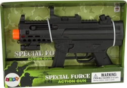 Stimola il gioco creativo ricco di azione! Questa pistola nera per bambini riproduce i suoni degli spari e vibra allo sparo, intensificando la sensazione realistica durante il gioco. Grazie alla lavorazione accurata e alla plastica resistente, è ideale per il divertimento quotidiano.
