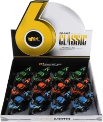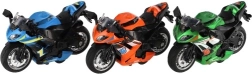 Questa moto da corsa è progettata per bambini dai 3 anni in su e offre dettagli realistici in tre diversi colori. Misura 12 x 7 x 6 cm ed è realizzata in una combinazione di metallo e plastica.