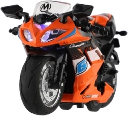 Goditi l'azione delle corse con un modello di moto in metallo dal design autentico. Questo giocattolo è il sogno di ogni piccolo appassionato di moto e vanta la funzione di retrocarica, luci e suoni. Le batterie sono incluse, quindi sarai pronto per partire all'azione!