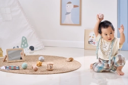 Questo set accuratamente composto sostiene lo sviluppo naturale del bambino fin dai primi giorni. Le carte ad alto contrasto allenano la fissazione dello sguardo e la percezione delle forme, lo specchietto in legno aiuta nell’autoscoperta e durante il tummy time, i sonagli e le maracas sviluppano ritmo, udito e coordinazione. Le diverse texture e forme delle palline tattili stimolano sia la motricità fine sia quella grossolana e rafforzano la presa.