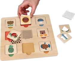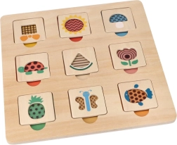 Un puzzle educativo in legno, intelligente e divertente, per i più piccoli favorisce lo sviluppo della motricità fine, il riconoscimento di colori, forme e motivi e allena il pensiero logico. La tavola di 28 × 28 cm con nove tasselli colorati è ideale per bambini da 12 mesi e, grazie alla sicura realizzazione in legno e ai bordi lisci, è una scelta perfetta per i primi giochi e l’apprendimento.
