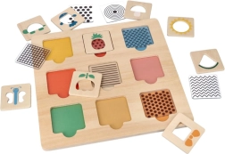 Questo puzzle educativo in legno porta ai bambini la gioia della scoperta. I motivi colorati (animaletti, fiori e altri motivi) invitano a inserire e far scorrere le tessere, sviluppando in modo naturale la coordinazione occhio–mano e la pazienza. Grazie alla tavola in legno robusta e ai pezzi facili da afferrare, il gioco è intuitivo e sicuro.