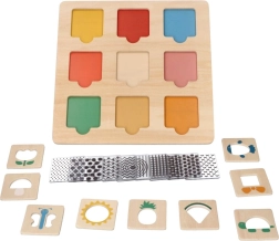 - 9 tasselli colorati per un divertente ordinamento e abbinamento.