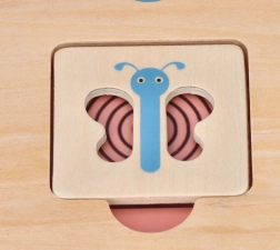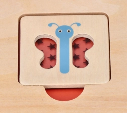 I pezzi si possono facilmente far scorrere e inserire negli spazi contrassegnati, motivando i bambini a riprovare più volte e a migliorare coordinazione e pazienza.
