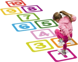 Saltare sulle caselle numerate migliora la motricità e l’equilibrio – perfetto per il gioco della campana.