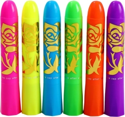 - Colori fluorescenti: Pennarelli neon e luminosi che attirano l’attenzione e assicurano un make-up d’effetto che spicca nella folla.