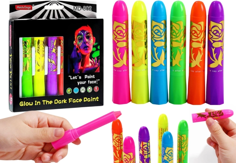 Scopri il tuo potenziale creativo con il set neon per pittura del viso. Questo set è ideale per chi desidera distinguersi a un festival, carnevale o durante Halloween. Grazie all’ampia gamma di colori, ogni bambino può creare un make-up unico e diventare la star di ogni evento.