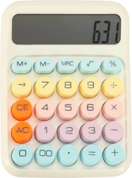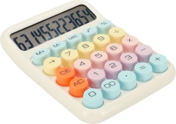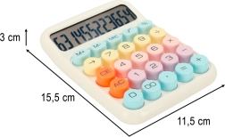 Questa calcolatrice è una scelta eccellente per i calcoli quotidiani sia in ufficio che a scuola. Attira subito l'attenzione con il suo design moderno grazie ai pulsanti rotondi e multicolore, che facilitano la navigazione e l'uso. Le dimensioni compatte di 15,5 x 11,5 x 3 cm rendono questa calcolatrice il compagno ideale, che si adatta facilmente nella borsa e non occupa molto spazio.