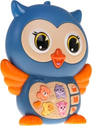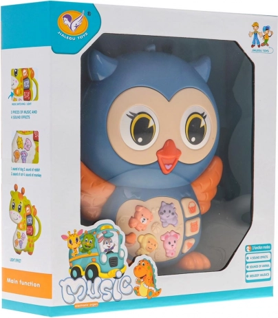 . | Gufo interattivo con funzioni sonore e luminose per bambini dai 6 mesi. Il gufo è realizzato in plastica della massima qualità, resistente agli urti e sicura per i più piccoli, senza spigoli vivi. È prodotto in colori vivaci per attirare l’attenzione del bambino e incoraggiarlo al gioco. Sul pancino del gufo c’è un pannello con pulsanti che attivano i versi degli animali (in prima modalità), melodie, suoni Do-Re-Mi (in seconda modalità) ed effetti luminosi sotto forma di luci lampeggianti sulle ali del gufo. Le modalità si cambiano tramite il pulsante a forma di cuore. Il giocattolo ha il controllo del volume. Funziona con 2 batterie AA 1,5 V (non incluse) .Funzioni del giocattolo: .- adatto a bambini dai 6 mesi, .- realizzato in plastica di altissima qualità in colori brillanti, .- sicuro, senza bordi taglienti, .- resistente agli urti, .- effetti luminosi: ali del gufo luminose, .- effetti sonori: .* modalità con versi di animali: cane, gattino, scimmia, pecora, tigre, elefante, .* modalità con suoni: melodie, suoni Do-Re-Mi. |
