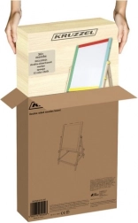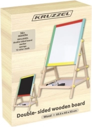 La lavagna bifacciale per bambini KRUZZEL unisce divertimento creativo e apprendimento. Un lato offre la superficie a gesso per disegnare, l’altro una superficie bianca cancellabile a secco con funzione magnetica per scrivere col pennarello e usare magneti. Il sistema girevole consente di cambiare rapidamente superficie tramite viti a farfalla.