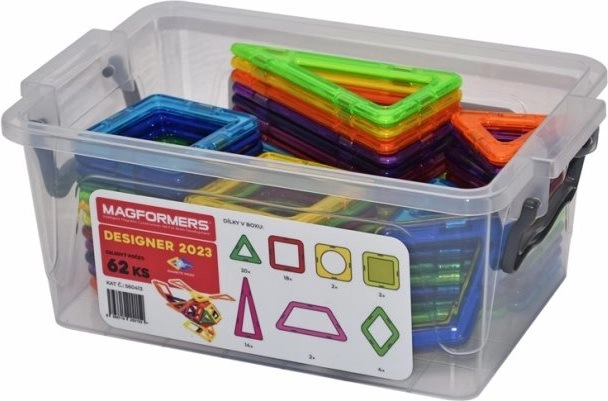 Magformers Designer 2023 arriva con un'ampia gamma di forme geometriche inclusi triangoli, quadrati e rombi. Questo set supporta la modellazione non solo di animali e oggetti di uso quotidiano, ma anche di oggetti astratti, rendendo ogni modello costruito unico. La confezione contiene:
