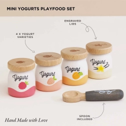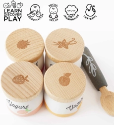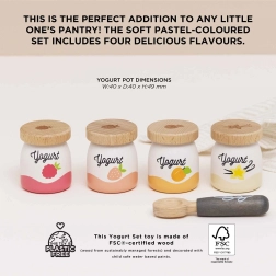 Inizia la giornata con il set di yogurt in legno di Le Toy Van! Contiene quattro simpatici modelli di yogurt con i gusti pesca, vaniglia, lampone e fragola. I pezzi di legno supportano lo sviluppo della motricità fine e permettono ai bambini di esplorare l'importanza della nutrizione salutare.