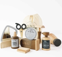 Questo set per piccoli parrucchieri e barbieri di Le Toy Van è ideale per tutti i giovani stylist. La borsa da parrucchiere con chiusura a coulisse è realizzata in cotone naturale ed è dotata di 11 pezzi di attrezzatura di alta qualità in legno liscio e arrotondato certificato FSC®. Ogni pezzo è dipinto a mano con vernici atossiche ed è resistente alle scheggiature.