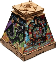 Trasforma la piramide in legno in un elemento di design che cattura l'attenzione. Questo secondo strato a tema Impero Azteco copre con eleganza i motivi originali e dona al tuo modello un aspetto deciso e colorato, ispirato all'antica Mesoamerica. L'espansione è destinata esclusivamente a PYRAMIDA SLUNCE e ha solo scopo decorativo – non influisce sul meccanismo né sulla soluzione del rompicapo.