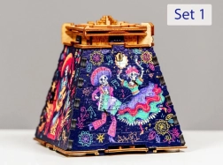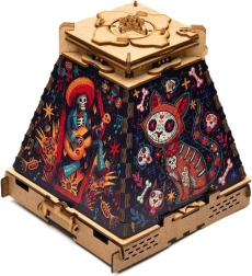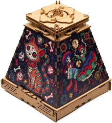 Trasforma il tuo iconico rompicapo Piramide del Sole in uno spettacolo di colori con l'espansione a tema Giorno dei Morti. I pezzi in legno tagliati con precisione e la stampa intensa creano un nuovo strato che valorizza il design dell'intera piramide e la trasforma in una decorazione fuori dal comune. L'espansione è destinata esclusivamente all'estetica – non interferisce con la soluzione del rompicapo originale.