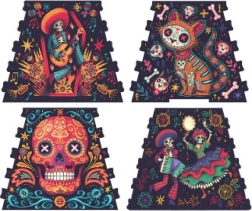 Dai nuova atmosfera alla piramide. Illustrazioni dettagliate di scheletri e simboli della festa dei morti conferiscono alla tua Piramide del Sole un aspetto unico che risalta in ogni ambiente.