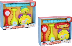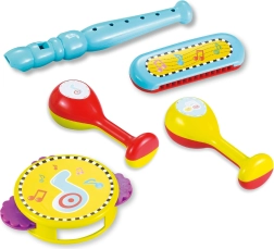 Questo colorato set di strumenti musicali offre tutto ciò di cui i bambini hanno bisogno per scoprire suoni e ritmi. Include maracas (2 pz), armonica a bocca, flauto e tamburello – una combinazione di strumenti che favorisce coordinazione, percezione uditiva e creatività.