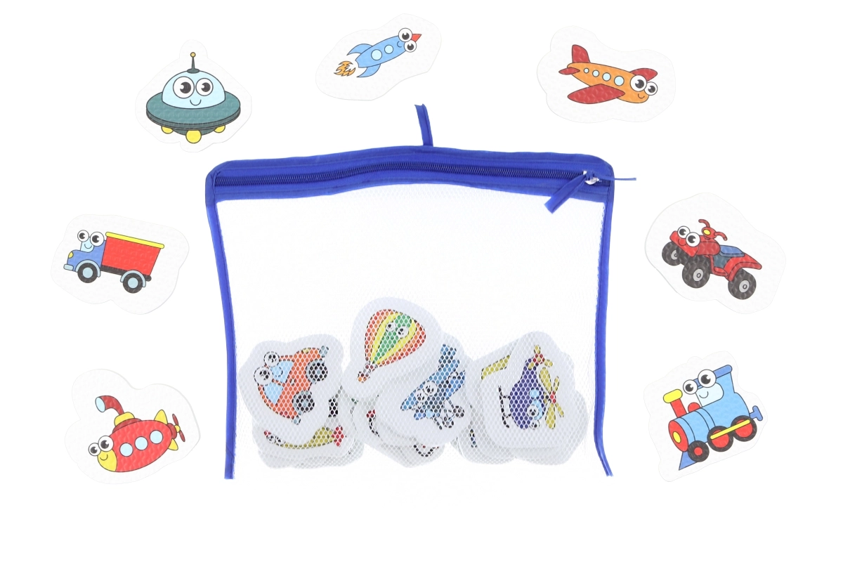 Rendi il bagnetto più divertente con gli adesivi da bagno a tema mezzi di trasporto. I pezzi in resistente materiale PE aderiscono facilmente a superfici lisce e umide, si rimuovono senza sforzo e sviluppano motricità fine e immaginazione. La confezione include 16 pezzi in una pratica rete con cerniera.