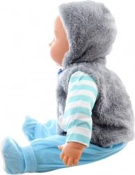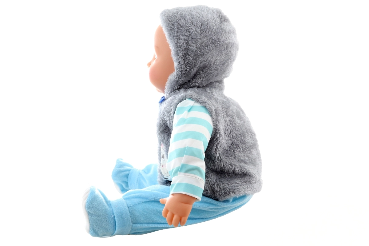 Questa grande bambola – bebè maschietto – è pensata per un gioco di cura autentico. Il corpo morbido invita alle coccole, mentre la testa e le estremità degli arti in plastica donano un aspetto realistico. Con la maglietta a righe, i pantaloni blu e il gilet soffice sembra un vero bebè che i bambini amano vestire e cullare.