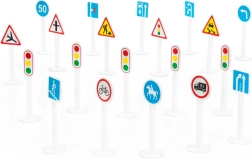 Prepara i segnali, avvia l'auto e parti per le strade! Impara a riconoscere i segnali stradali in modo divertente con questo set di plastica!