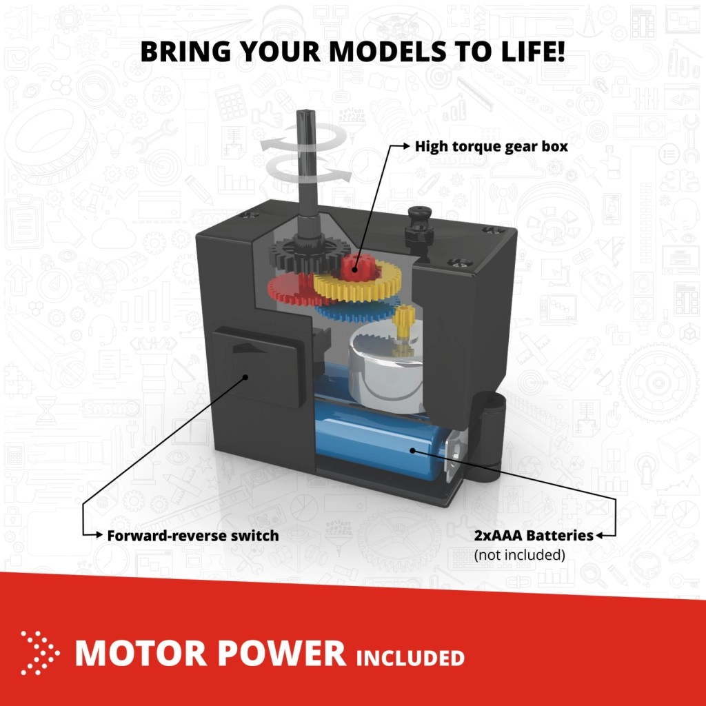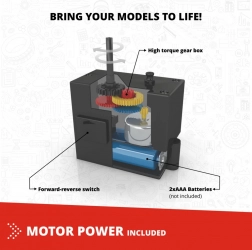 Il set include un motorino con impostazione della direzione di movimento. Dai vita ai tuoi modelli e lasciali correre o muoversi.