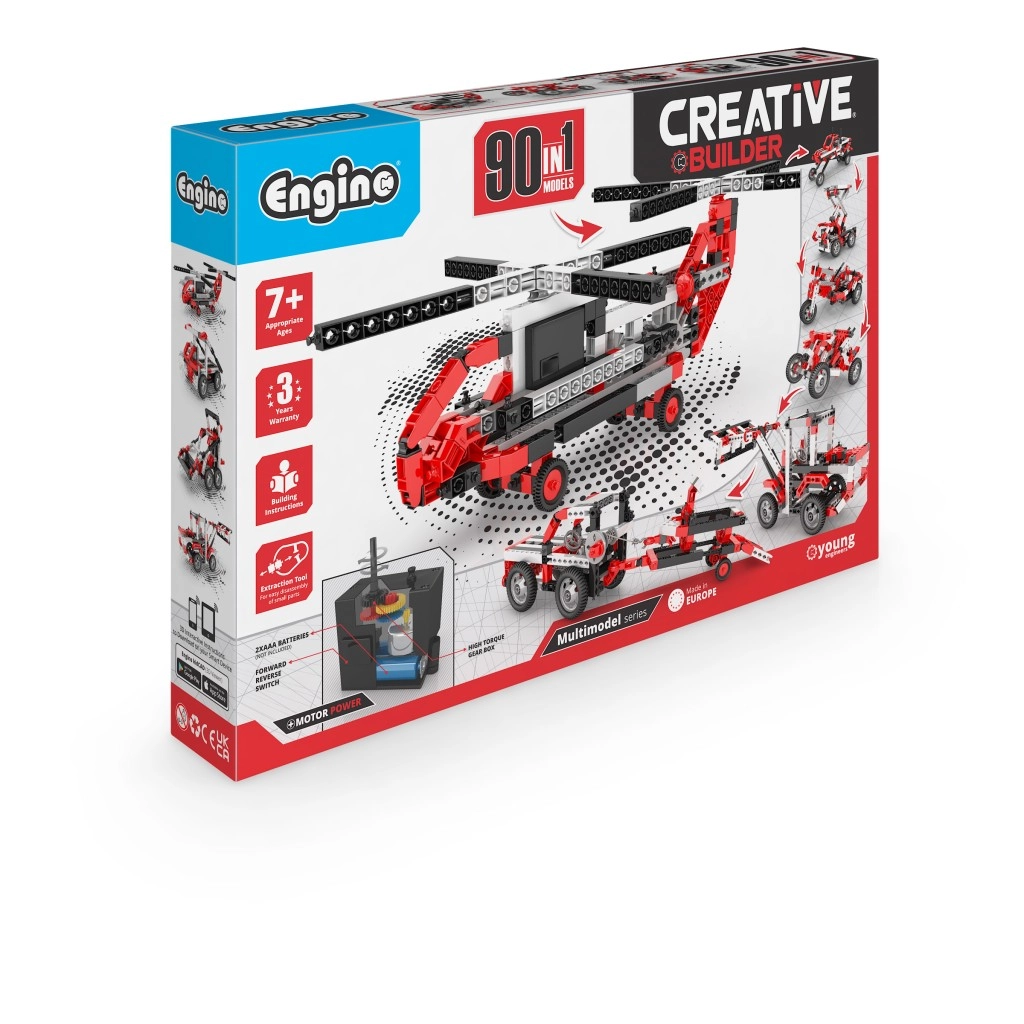 Scopri infinite possibilità di costruzione con il set ENGINO Creative Builder 90 in 1 con motorino per azionare i modelli. Da un unico set puoi assemblare fino a 90 modelli diversi, dalle auto e moto agli aerei ed elicotteri. Grazie all’app interattiva kidCAD 3D puoi ruotare i modelli, ingrandire e imparare passo dopo passo. Adatto dai 7 anni, compatibile con gli altri set ENGINO.