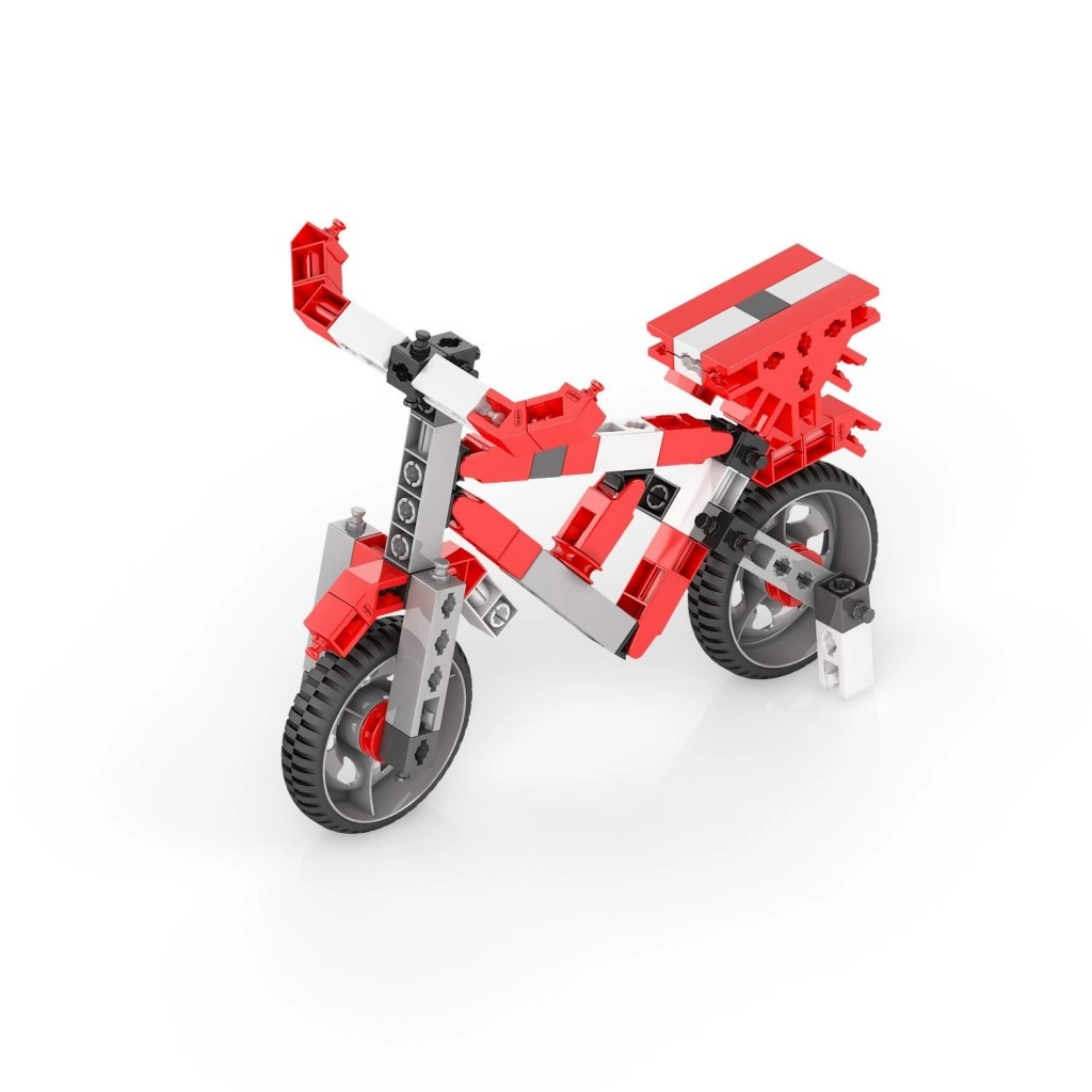 Sviluppa la creatività e la manualità dei bambini con il robusto set ENGINO Creative Builder. I singoli pezzi si agganciano con facilità e permettono rapide riconfigurazioni in nuovi modelli: dall’auto veloce alla moto fino all’aereo. Grazie al motorino con selezione della direzione le tue creazioni si muoveranno davvero.