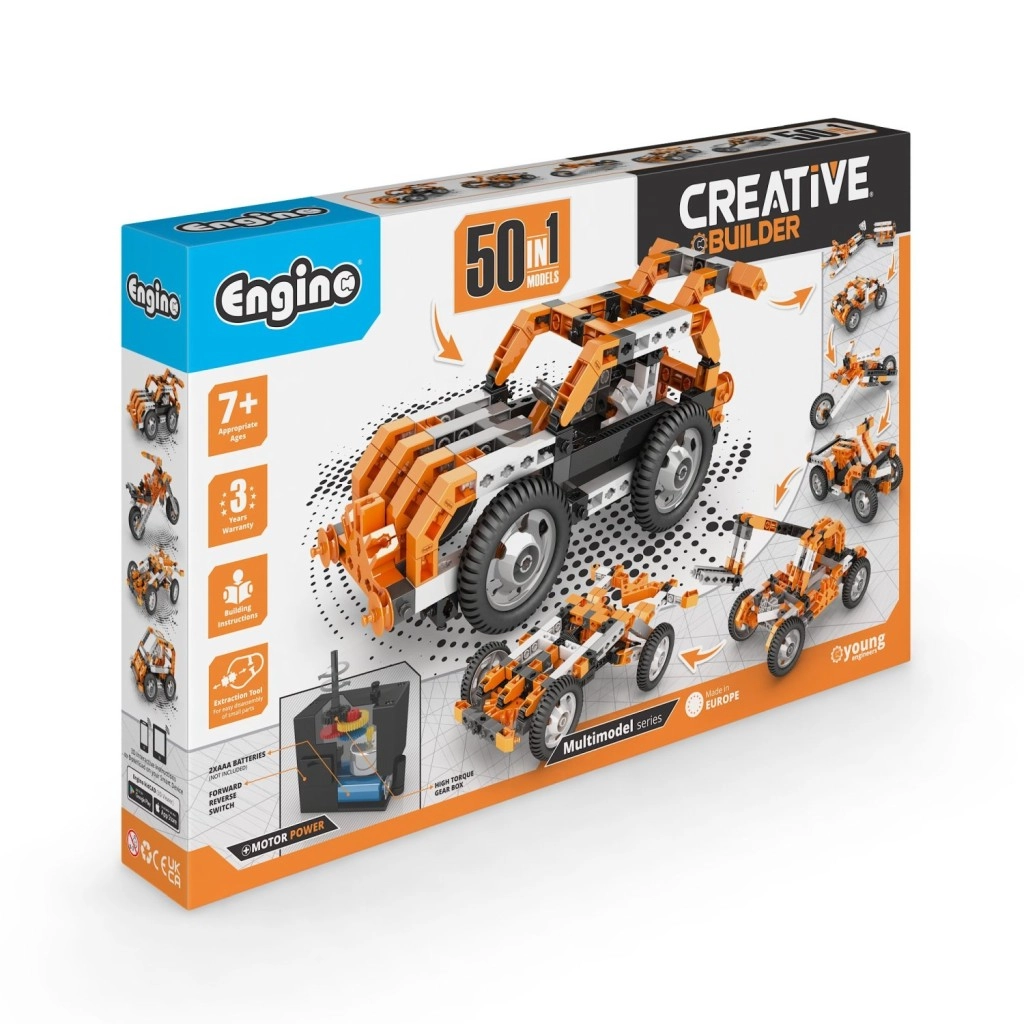 Il set di costruzioni Engino Creative Builder offre ai bambini ore di divertimento e apprendimento. Grazie al sistema di pezzi ben studiato, è possibile riconfigurare rapidamente un modello in un altro ed esplorare nuove possibilità costruttive. Include un motore con ingranaggi per invertire la direzione del movimento, così i modelli possono davvero muoversi e ruotare.
