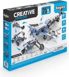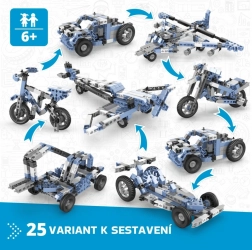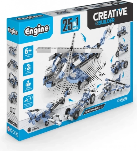 Il set di costruzione Engino Creative Builder offre un ricco mix di divertimento e apprendimento in uno. Da un unico set di pezzi puoi assemblare fino a 25 modelli ingegnosi – auto, dragster, aereo, macchine da lavoro e veicoli insoliti. I bambini esercitano motricità fine, percezione spaziale e basi STEM in modo ludico.