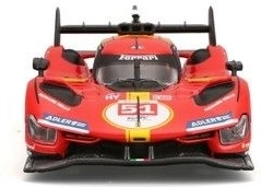 Questo dettagliato modello die-cast riproduce fedelmente il prototipo di categoria LMH Ferrari 499P, che ha trionfato nella leggendaria 24 Ore di Le Mans 2023. Proporzioni realistiche, linee nette della carrozzeria e autentici elementi da gara rendono il modello un pezzo attraente da vetrina.