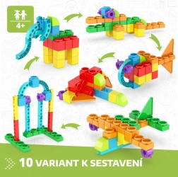 Costruisci animaletti, macchine e veicoli con pezzi grandi, colorati e facili da collegare. La varietà stimola l'immaginazione e la motricità fine.