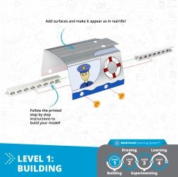 Scoprite come funziona la spinta di galleggiamento e i principi della fisica con il creativo set di costruzione ENGINO. I bambini possono assemblare fino a 4 modelli e, grazie all’apprendimento a più livelli, combinano costruzione, creatività ed esperimenti. 4 modelli in uno, fisica educativa attraverso il gioco, app Engino kidCAD con modelli 3D e livelli di apprendimento progressivi favoriscono una scoperta divertente della scienza.