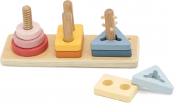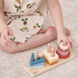 I pezzi e i pioli in legno insegnano a riconoscere forme e colori, supportano il pensiero spaziale e la classificazione logica. Ideale per i primi passi nella geometria.